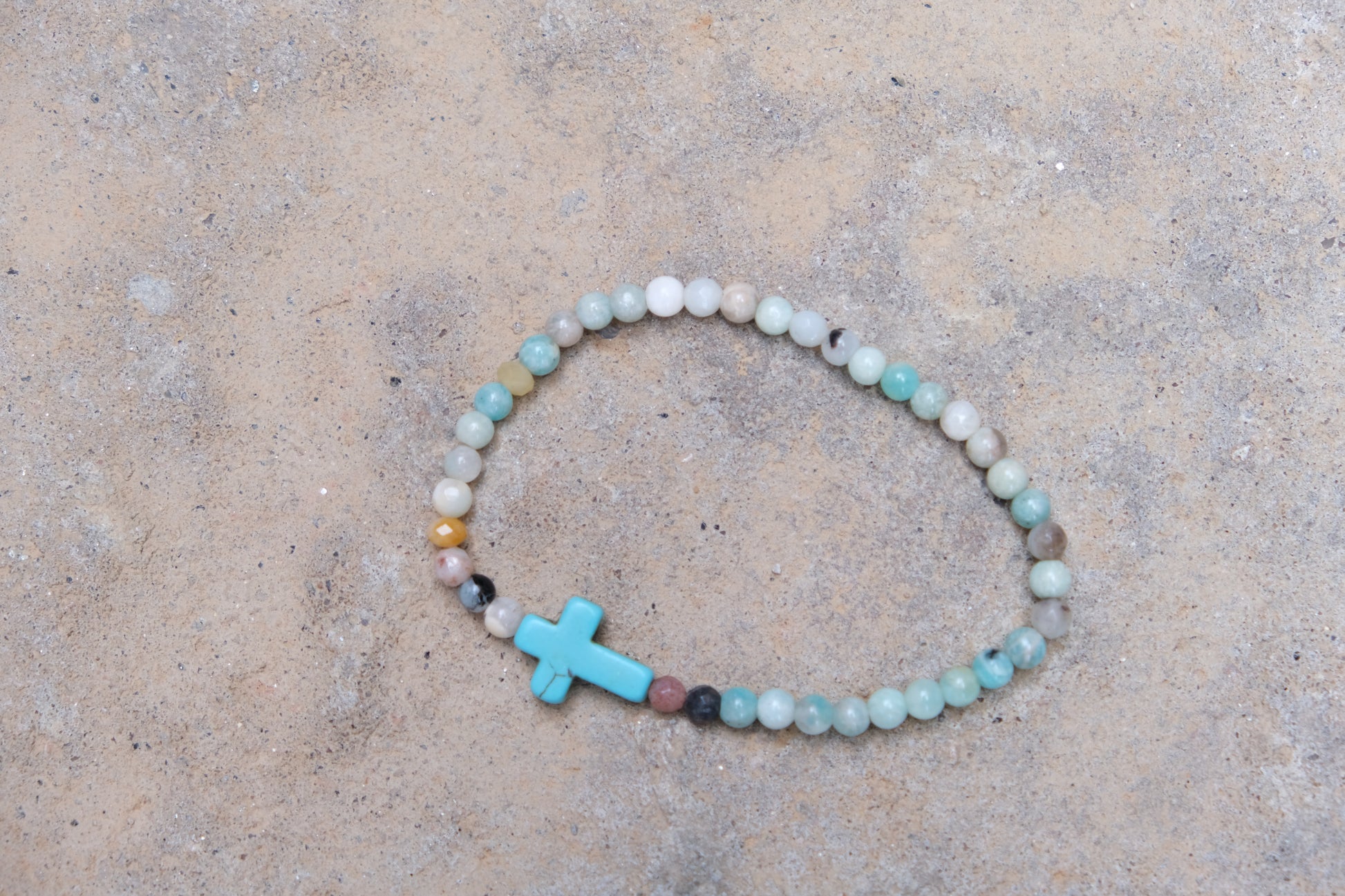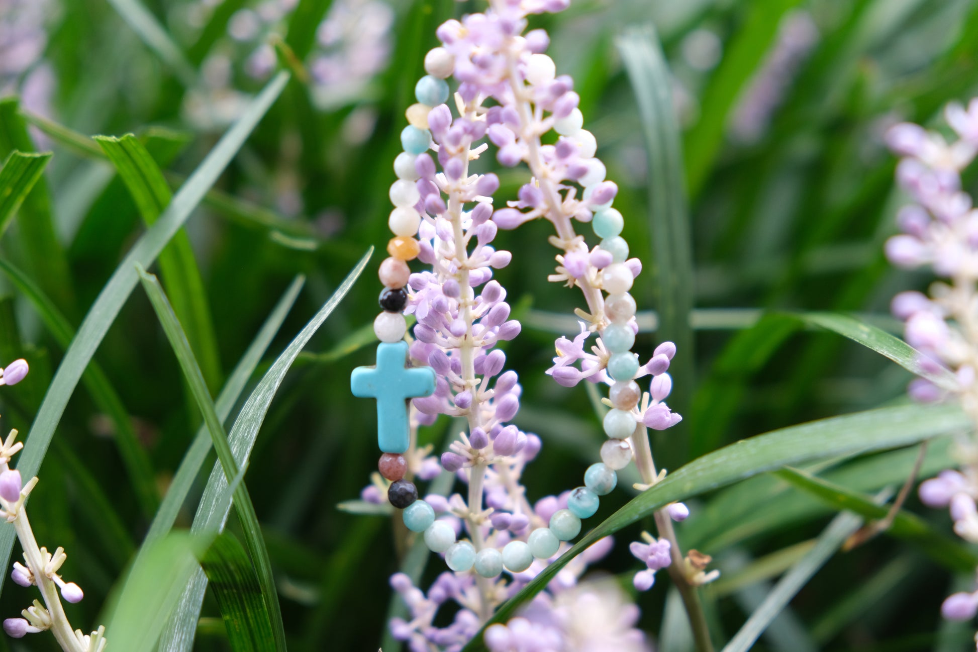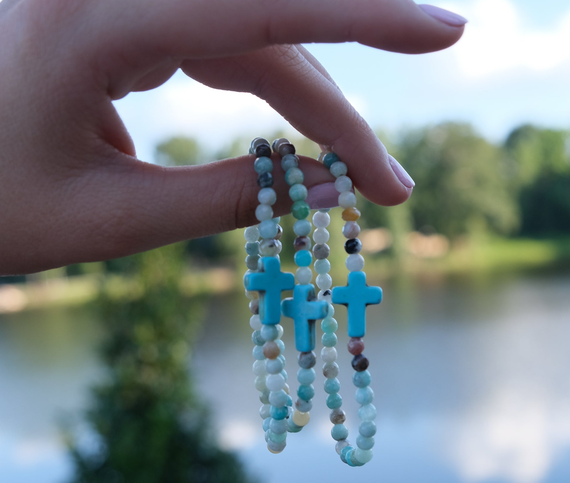 The aqua stones symbolize flowing grace, the varied beads reflect the beauty of God’s creation, and the cross at the center points to the eternal well that never runs dry. He is the Living Water...our source, our strength, our Savior.